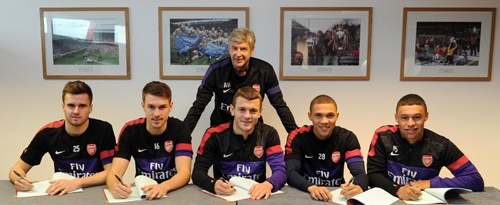 Все пятеро футболистов, подписавших новые контракты, представляют Британию. Аарон Рэмси – самый опытный игрок сборной, в его активе 24 матча, ранее он являлся капитаном сборной Уэльса. Все остальные являются игроками сборной Англии, причем последним за команду «трех львов» дебютировал Карл Дженкинсон – это произошло в ноябре этого года. Киран Гиббс регулярно играл за молодежную сборную страны, а за главную команду пока провел лишь 2 матча. У Джека Уилшира – 9 игр за главную команду страны.