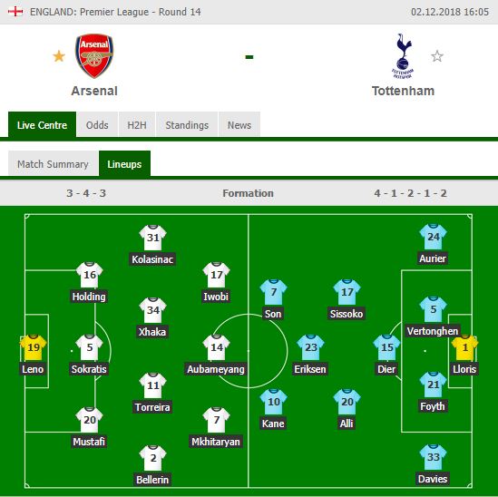 Лено – Мустафи, Сократис, Холдинг – Беллерин, Торрейра, Джака, Колашинац – Мхитарян, Обамеянг, Ивоби.