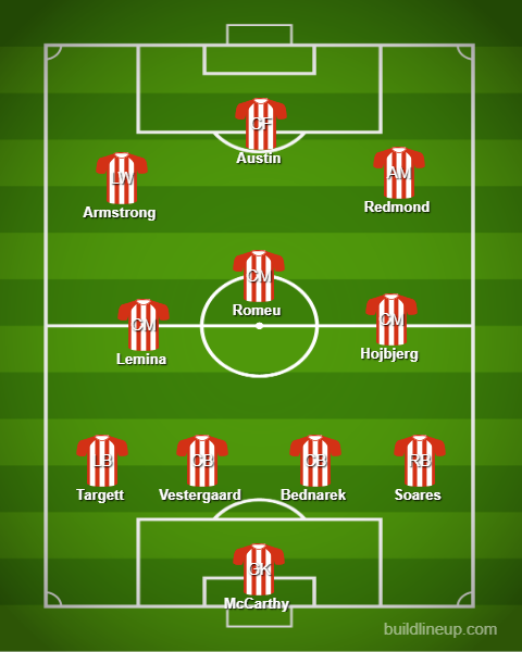 Маккарти – Соараеш, Беднарек, Вестергаард, Таргетт – Лемина, Ромеу, Хойберг – Рэдмонд, Остин, Армстронг.